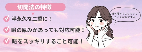 半永久的な効果を求める方に最適な方法で、まぶたの厚みがある方にも対応できます。