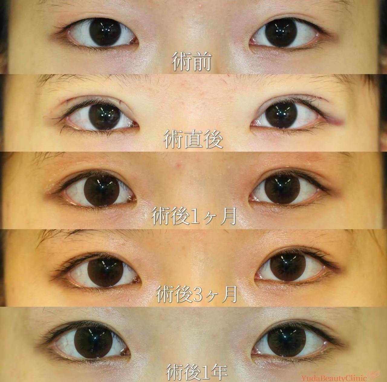 幅広い二重を希望された場合は2ヶ月ほど、なかなか腫れがおさまらないこともありますのでご注意ください。