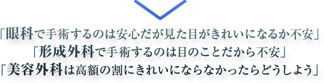 手術を受けた美容クリニックを受診しても 「眼科へ行ってください」と対応され悩まれるお客様が多くいます。