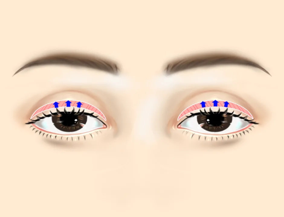 まぶたのやや深めのところにある、まぶたを持ち上げる筋肉を操作する方法です。