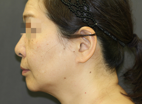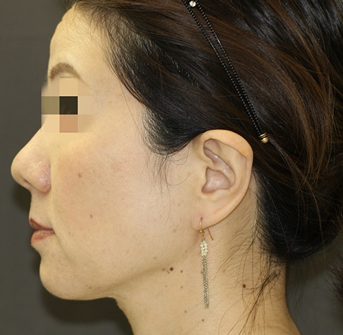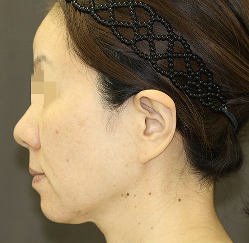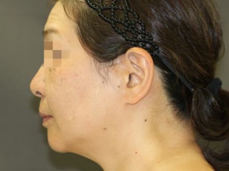 フェイスラインが上に引きあがり、横からのプロフィールが若々しくなりました。顔と首との境界も明瞭になりました。