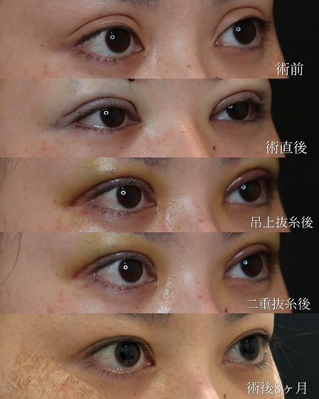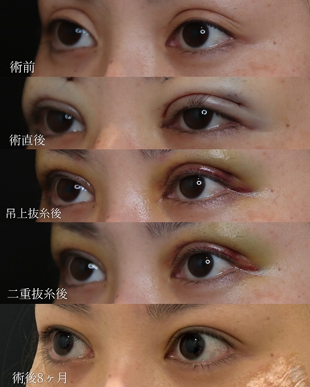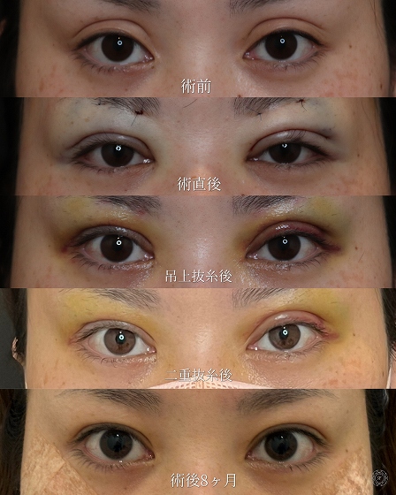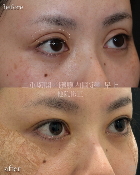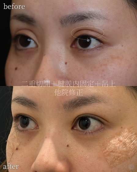 二重切開+腱膜内固定+吊り上げ+他院修正
