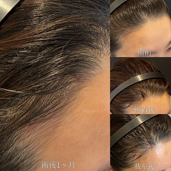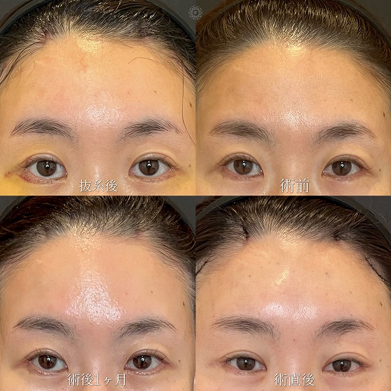 ・骨に小さなトンネルを作り額を引き上げ自然な仕上がり